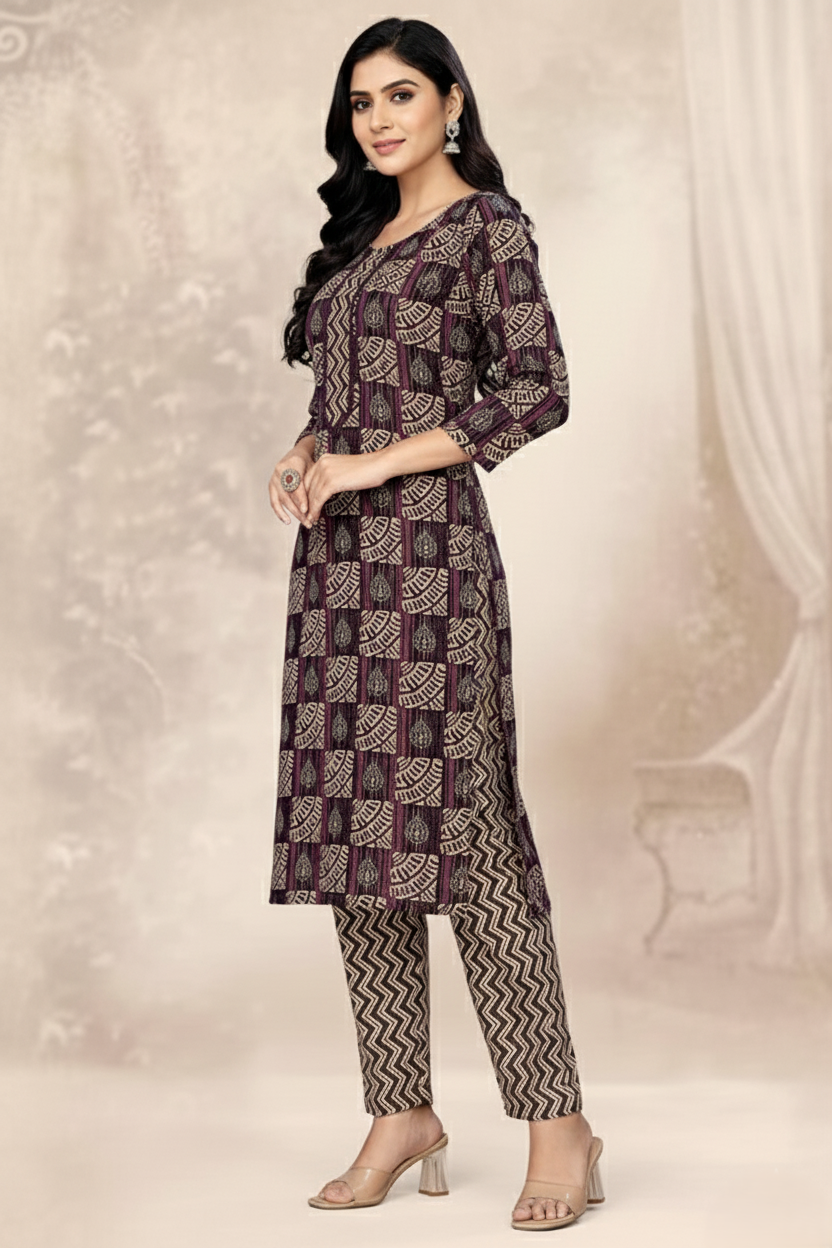 A simple and elegant kurti-pant set with a relaxed fit, perfect for a clean, minimal, and comfortable everyday look.