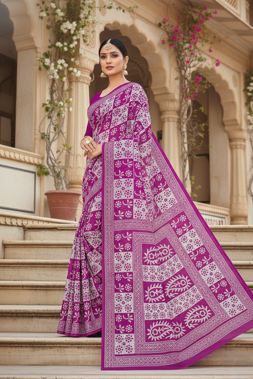 Women’s Pure Cotton Saree With Blouse Peace